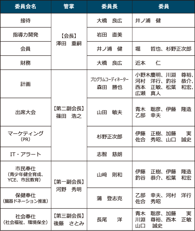 【第一副会長】 河野 秀明 | 山ア 則和 | 伊藤 正樹、伊藤 隆造、釣谷 恭介 松葉 和宏 |